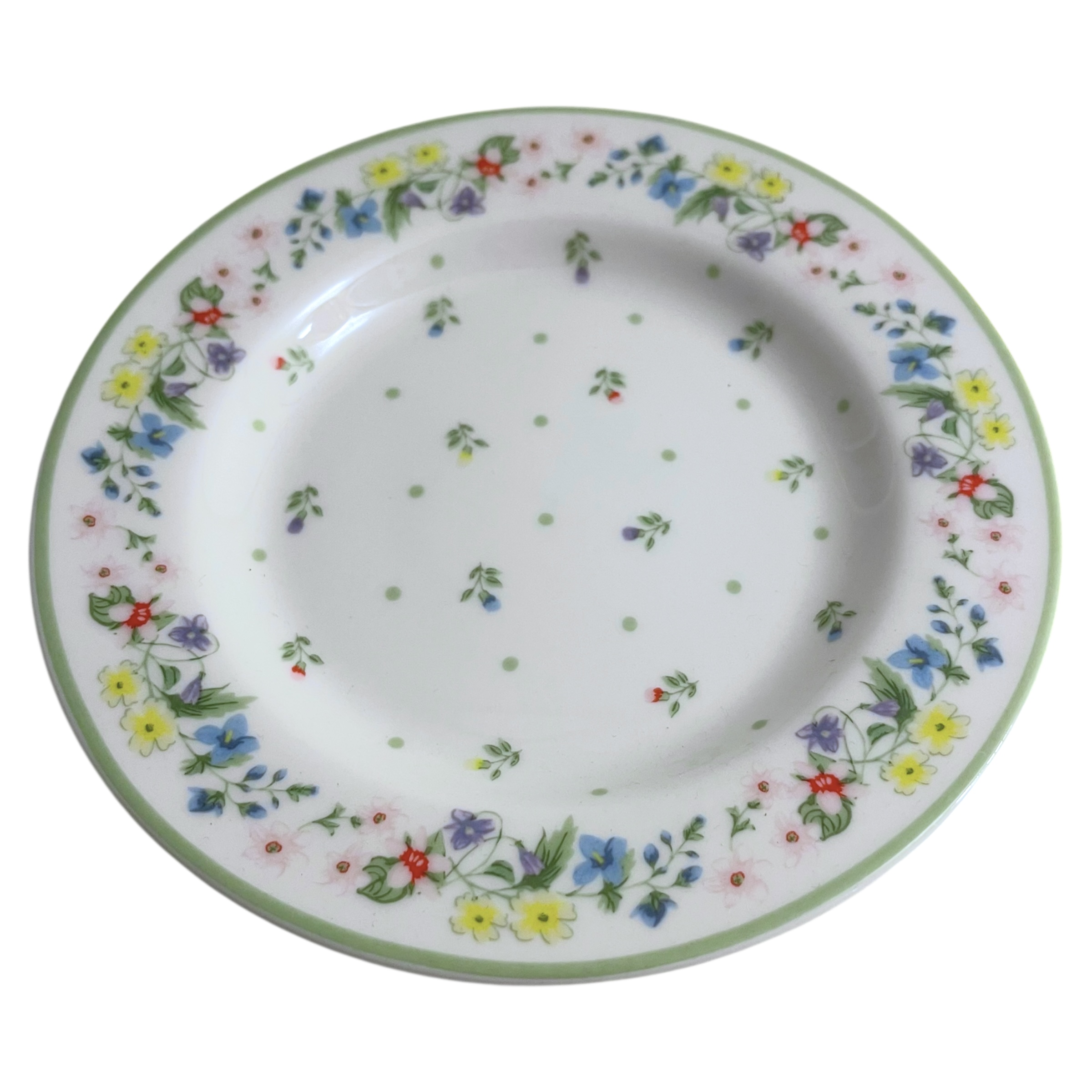 - Design & Stil: Der Teller besticht durch ein wunderschönes Muster aus zarten Streublümchen und Tupfen in den Farben Hellgrün, Gelb, Blau, Lila und Pink auf weißem Hintergrund. Das Design basiert auf antiken, handbemalten Dekoren aus dem 19. Jahrhundert und interpretiert den typisch nordischen Chic modern.